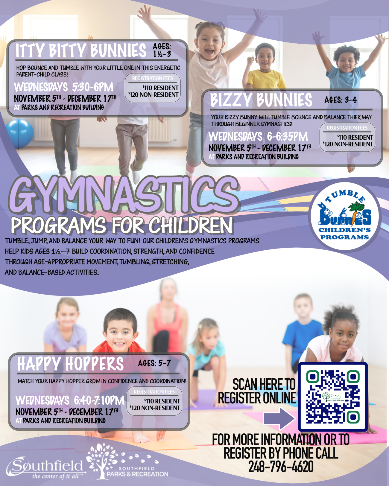 It’s time to jump, tumble, and roll into a new season of Children’s Gymnastics at Southfield Parks & Recreation!