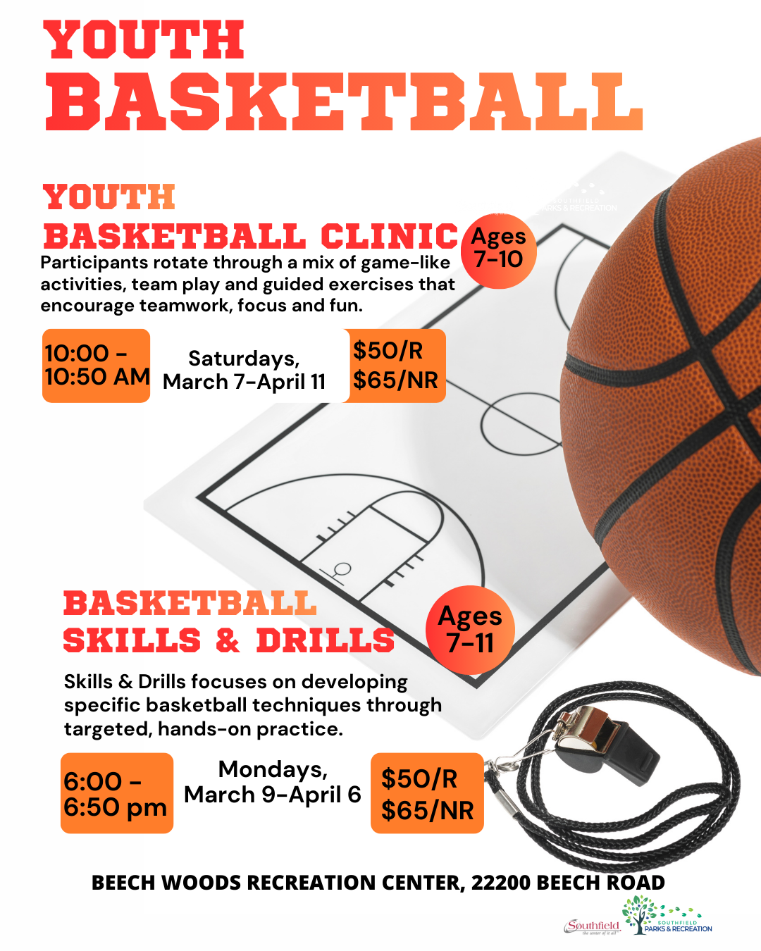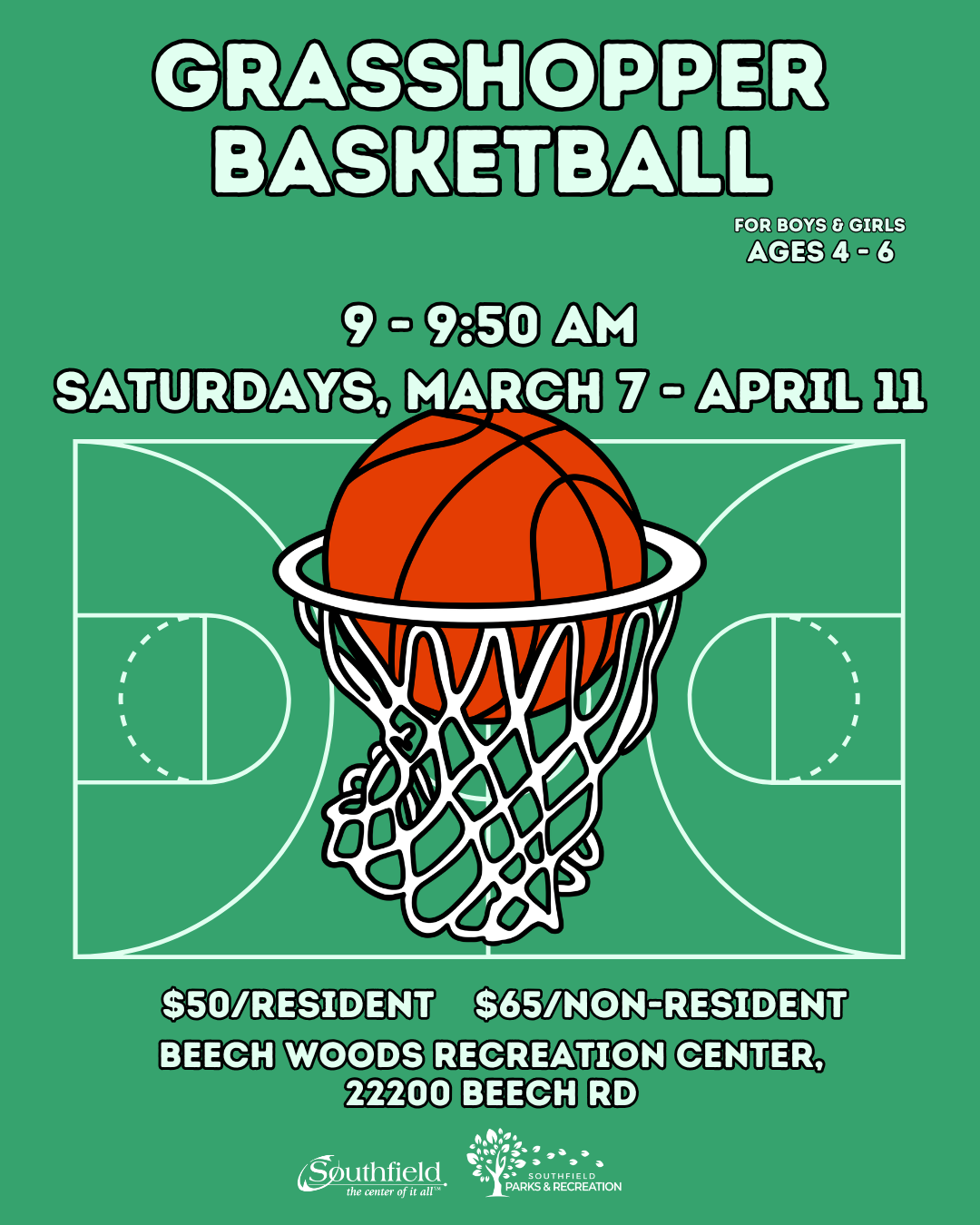 Spots fill quickly each season. Register early to secure your child’s place on the court and be part of another great winter of Youth Basketball at Beech Woods Recreation Center.