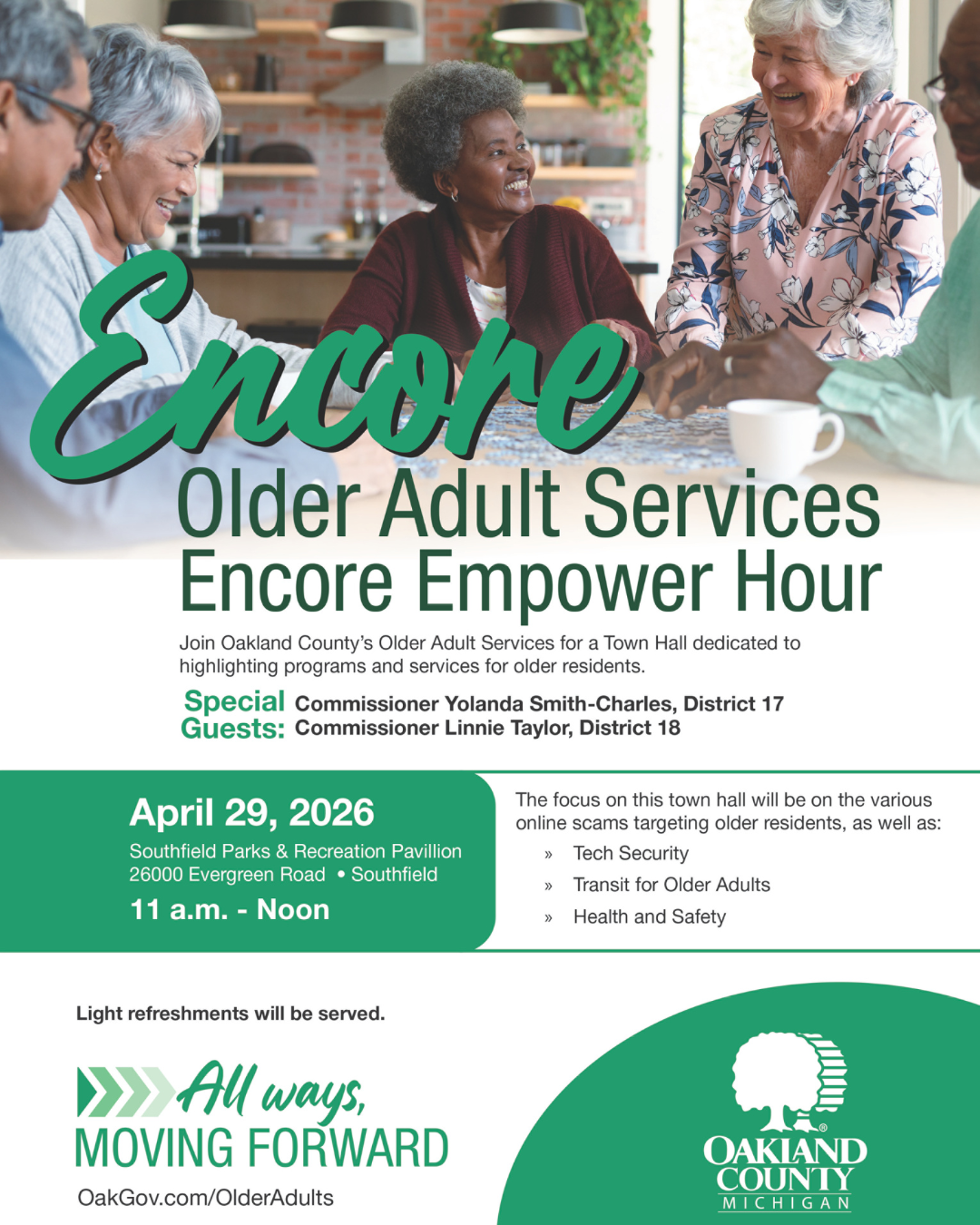 Join Oakland County’s Older Adult Services for Encore: Empower Hour, a community town hall focused on programs, resources, and important topics impacting older adults.