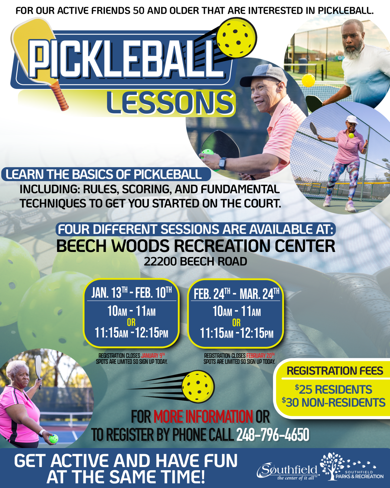 Register at the Southfield Parks & Recreation Information Desk or call 248-796-4620