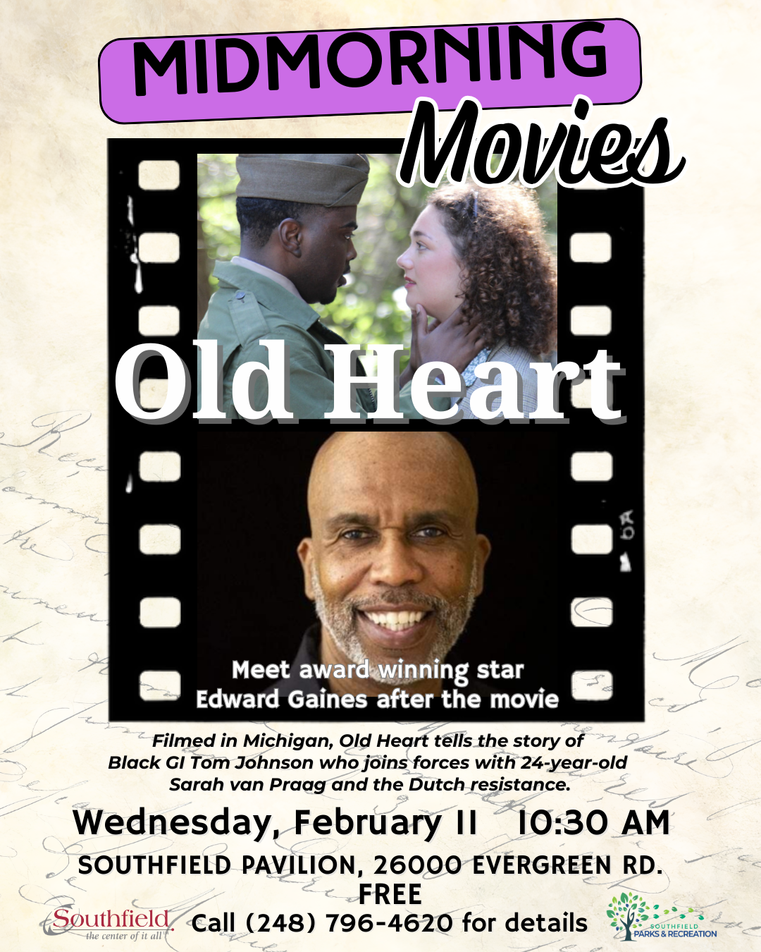 Join us for a special Midmorning Movies presentation in recognition of Black History Month featuring Old Heart, a film that honors Black soldiers who have fought for our country and serves as a tribute to elder independence.