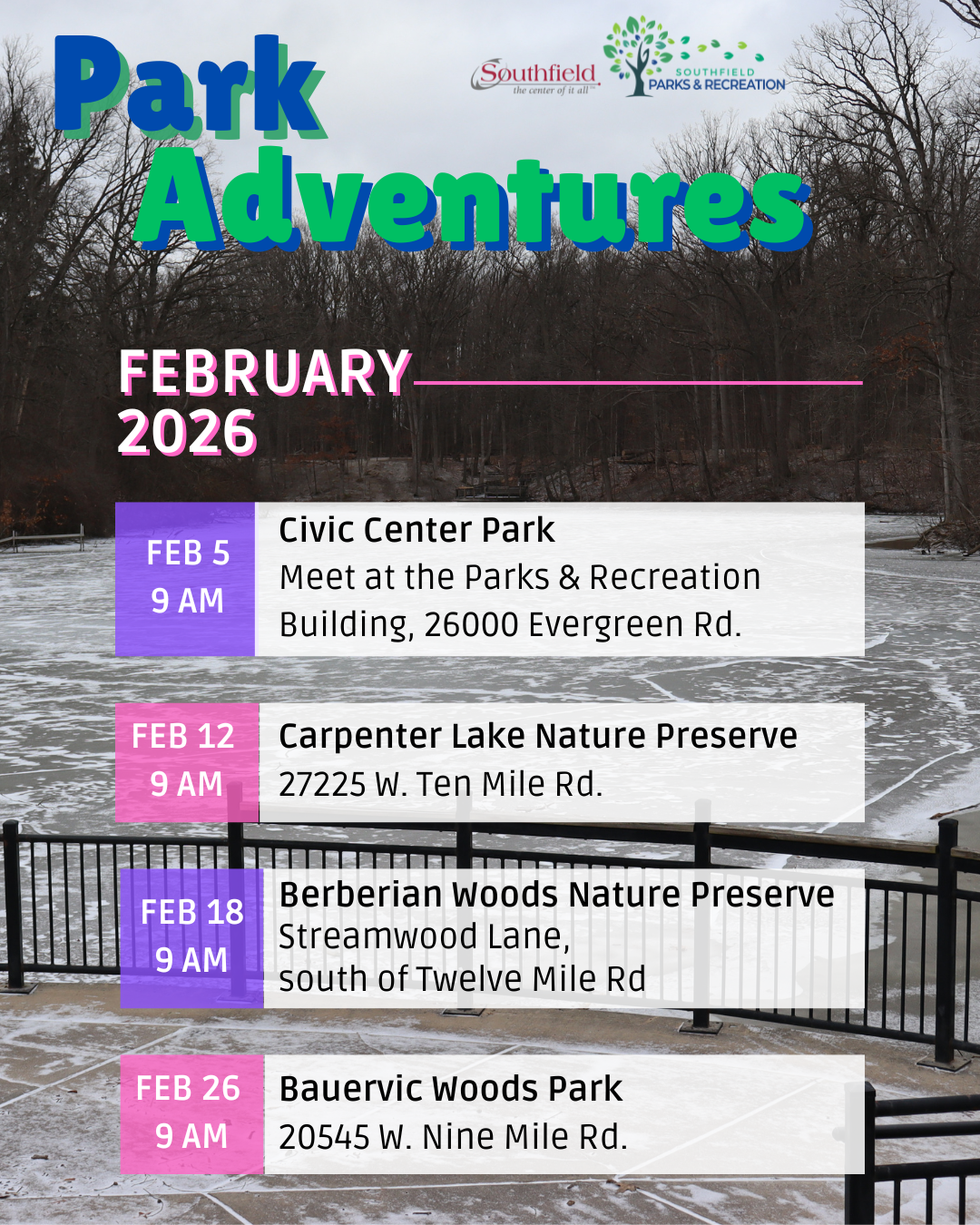 Bundle up, bring a friend, and come explore Southfield’s parks with us!
