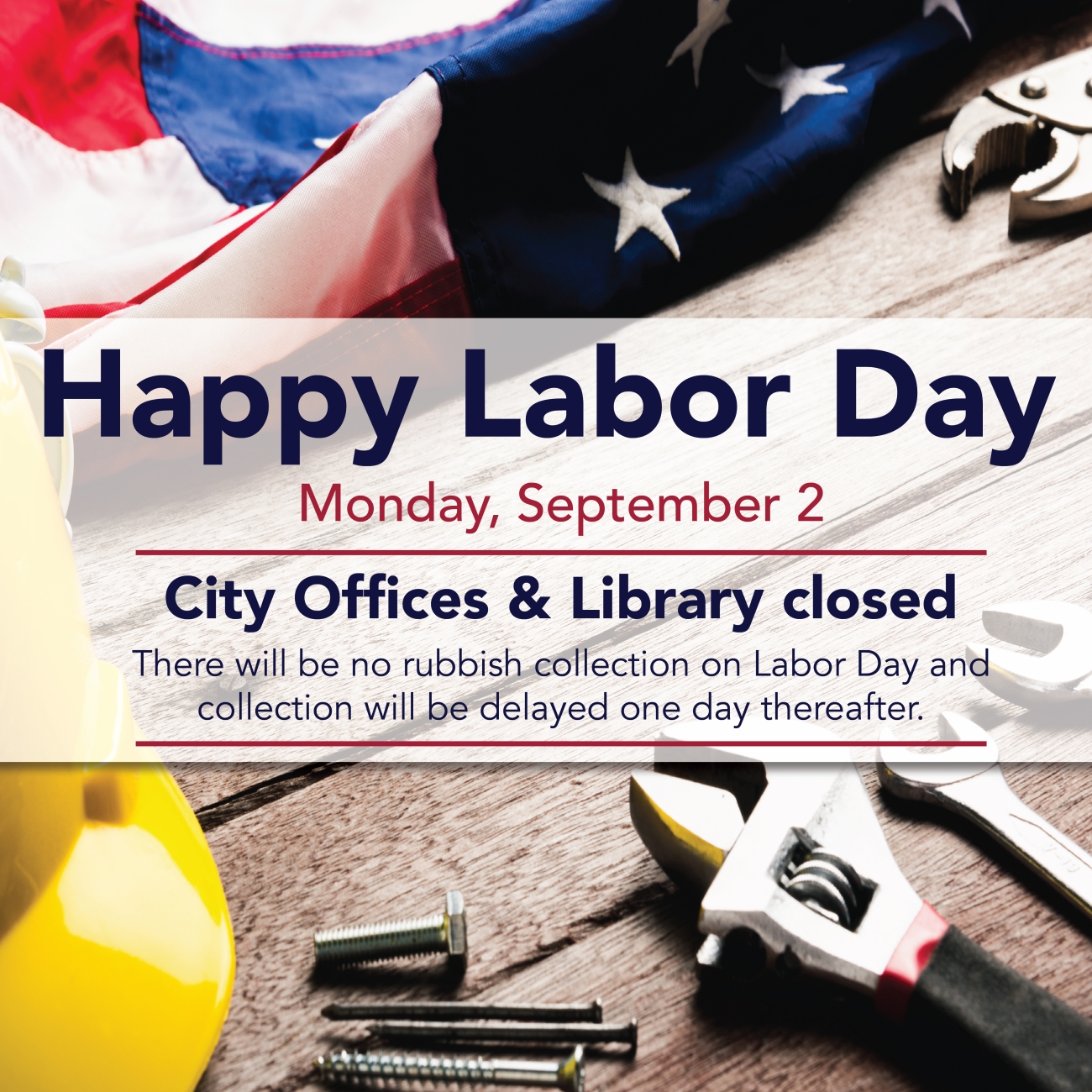City Offices and Library closed Monday, September 2 in observation of Labor Day